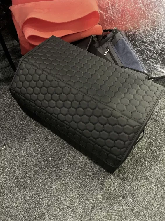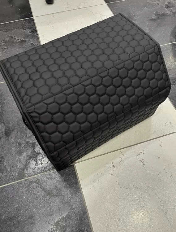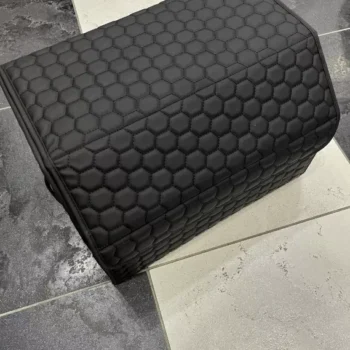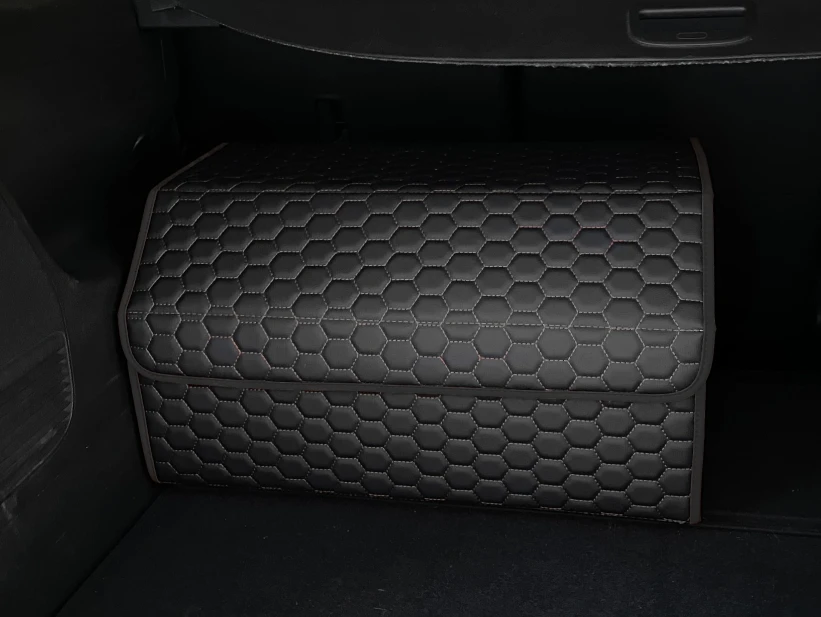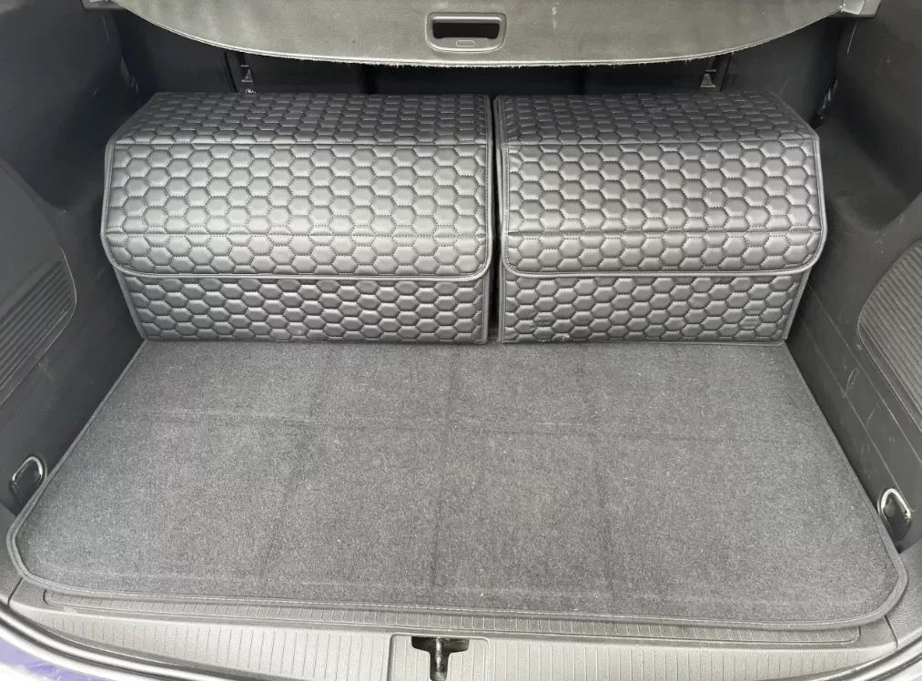 Our trunk organizer features two robust eco-leather handles on its sides, firmly stitched and reinforced with metal fasteners for durability. These handles make it effortlessly portable, ensuring smooth transportation between your car, home, and garage.