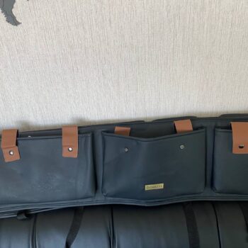 Enjoy your perfectly organized trunk with an abundance of pockets. Two buttoned pockets, two narrow pockets, one zipper pocket, and three pockets with fixing straps are perfect for keeping your cleaning supplies, drinks, first aid kits, and other car essentials.