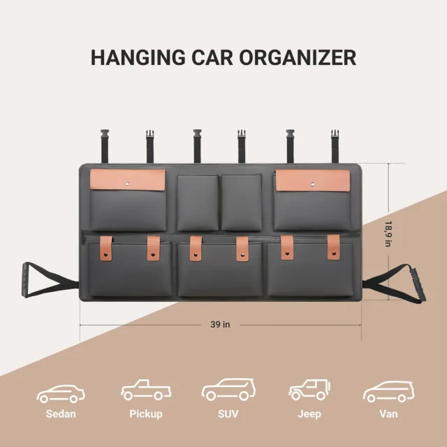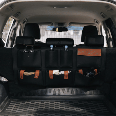 This trunk organizer is made of waterproof and durable eco-leather, which can be easily cleaned from dirt, dust, or liquids with a damp cloth.
