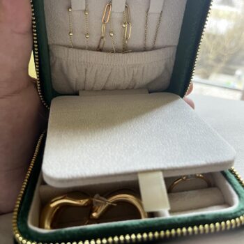 It’s not just a box, it’s a guardian for your jewelry. The high-quality plush velvet material is not only visually appealing but provides a soft cushion for your jewelry, protecting it from scratches and damage. The unique double-layered design allows for maximum storage in a minimal space, making it exceptionally functional. The exquisite gold-colored zipper not only enhances its elegance but also ensures the safety of your treasures.