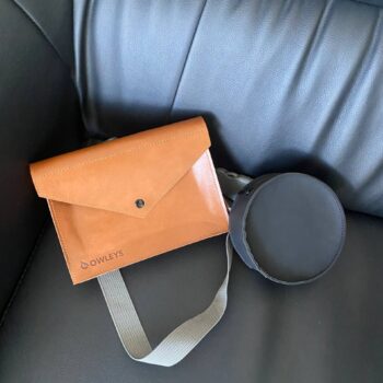 This waist bag is crafted from waterproof 600D Oxford fabric, soft and smooth eco-leather, and durable metal alloy for buckles and fasteners.