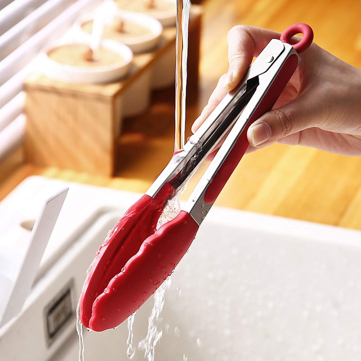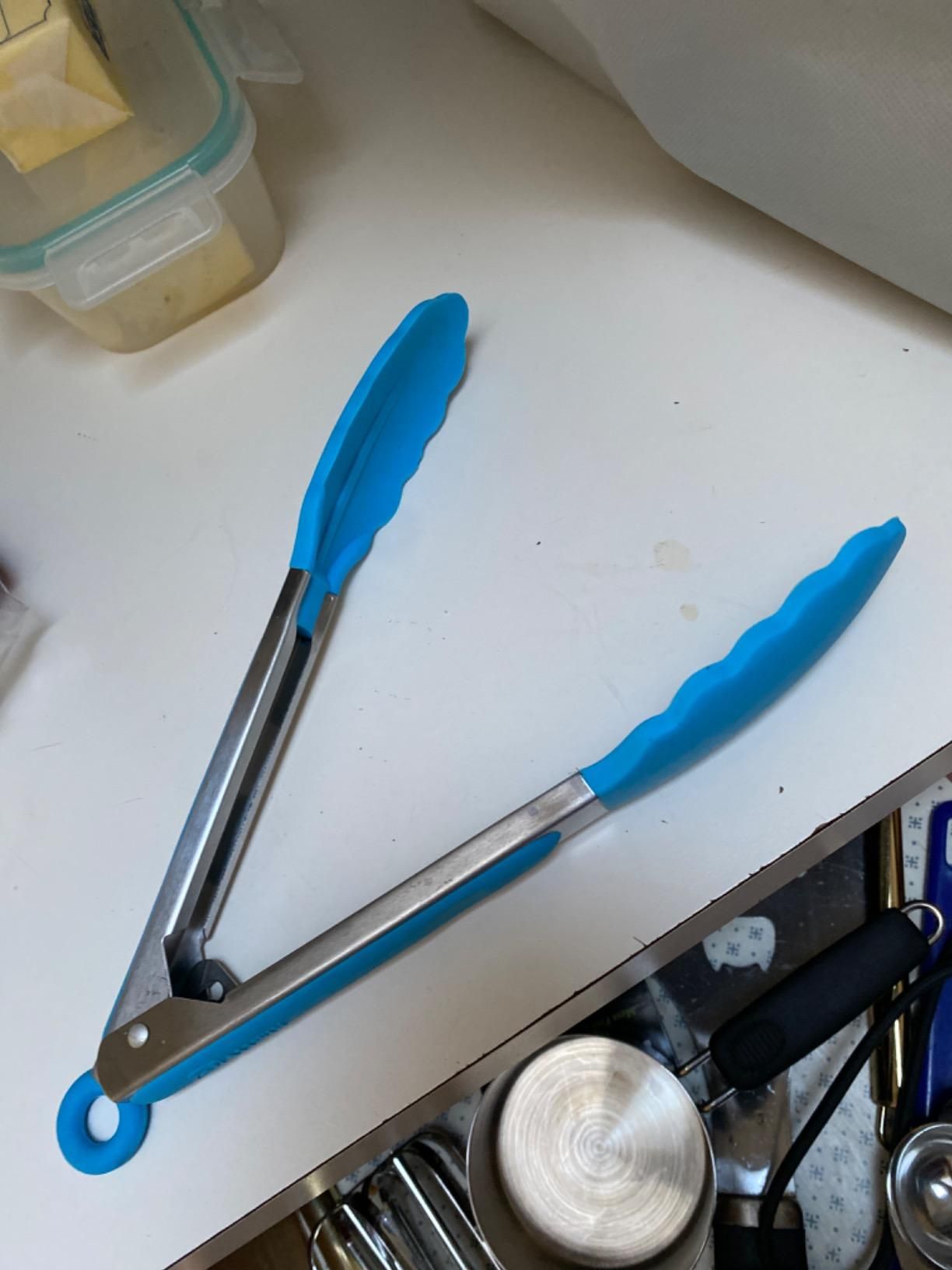 These tongs, along with a silicone coated spoon and spatula, have become my go-to kitchen utensils. So glad I bought them.