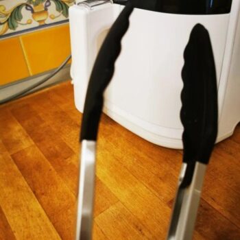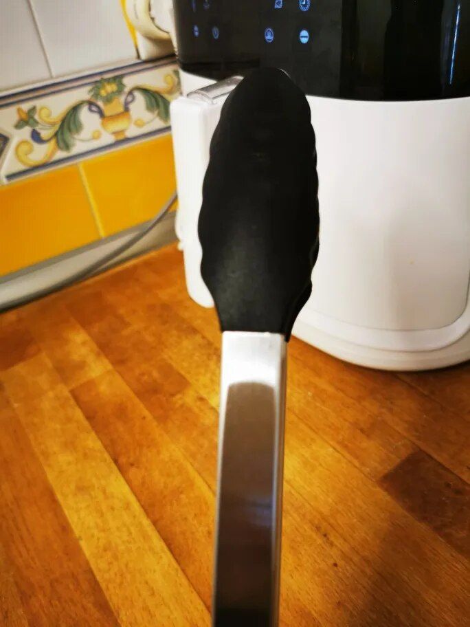 I got these tongs for my air fryer because of the silicon tips. They're gentle on non-stick surfaces and super easy to clean. Plus, the locking feature is handy for saving drawer space.