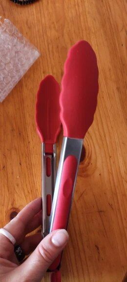 I absolutely love these tongs. They're the right size for serving or grabbing food from the toaster oven.
