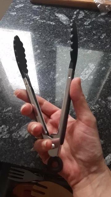 Can't believe I managed without these tongs before. They grip well and are perfect for coated pots.