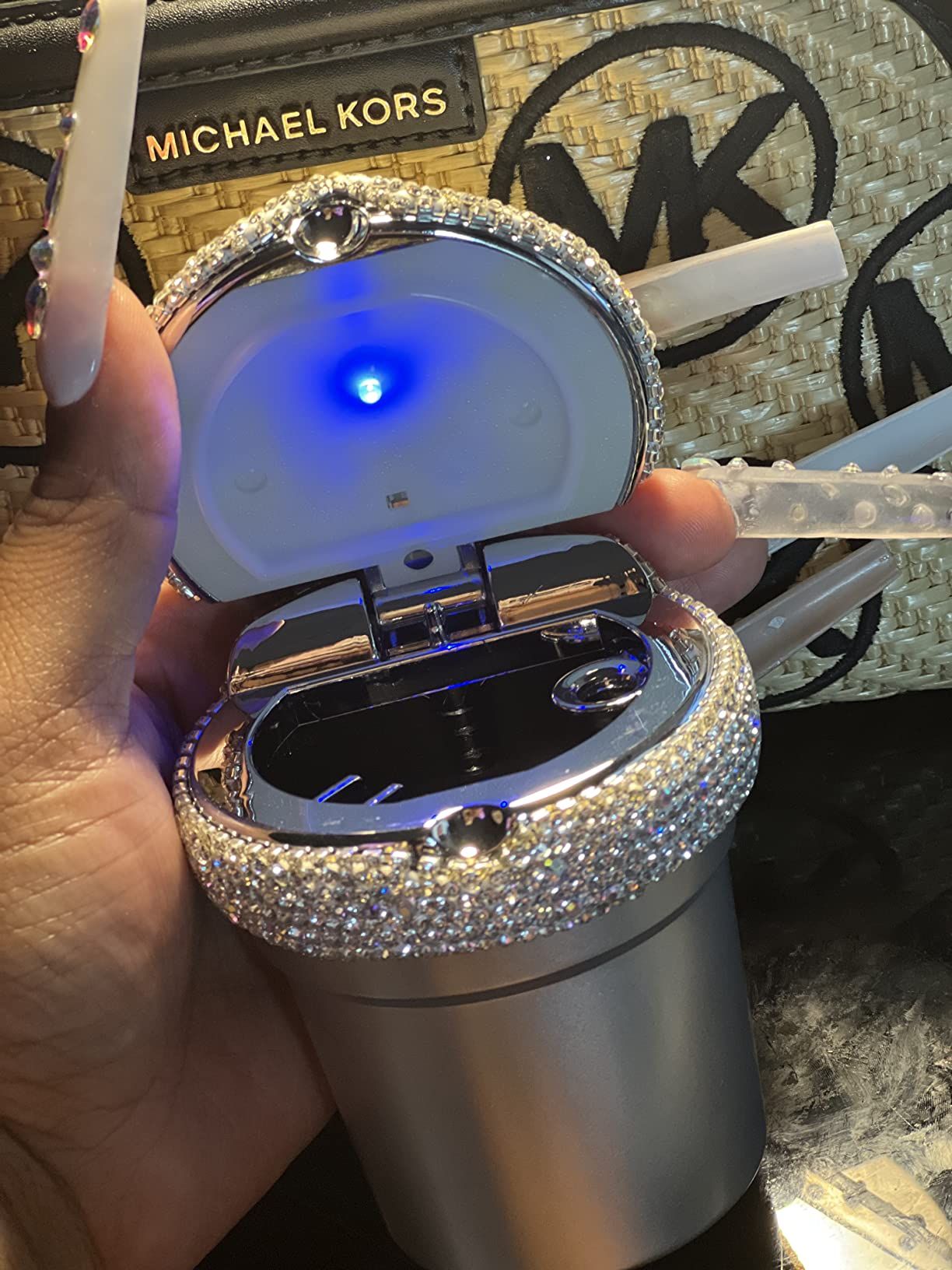 LED Light Car Ashtray with Luminous Rhinestones