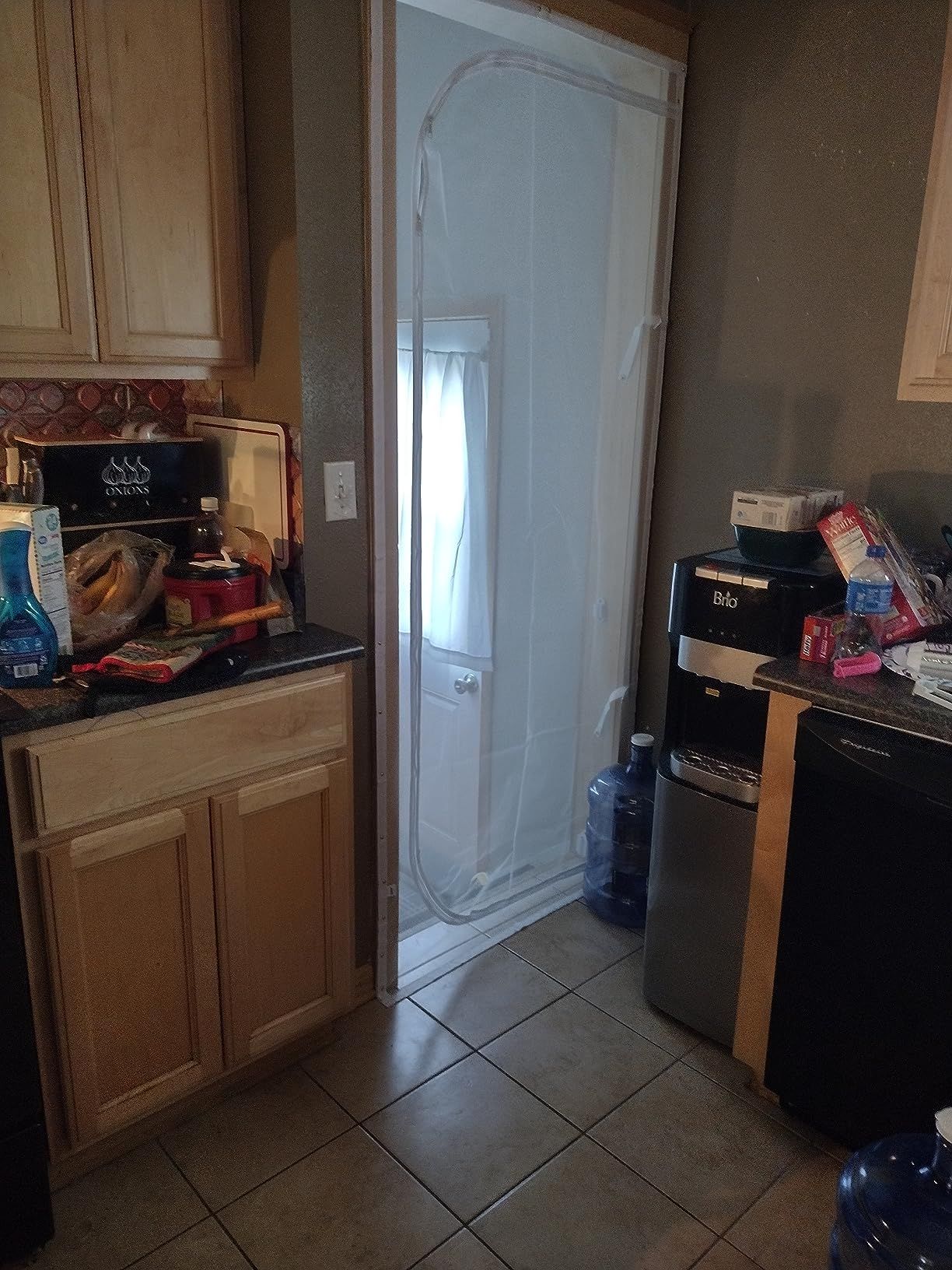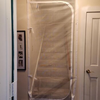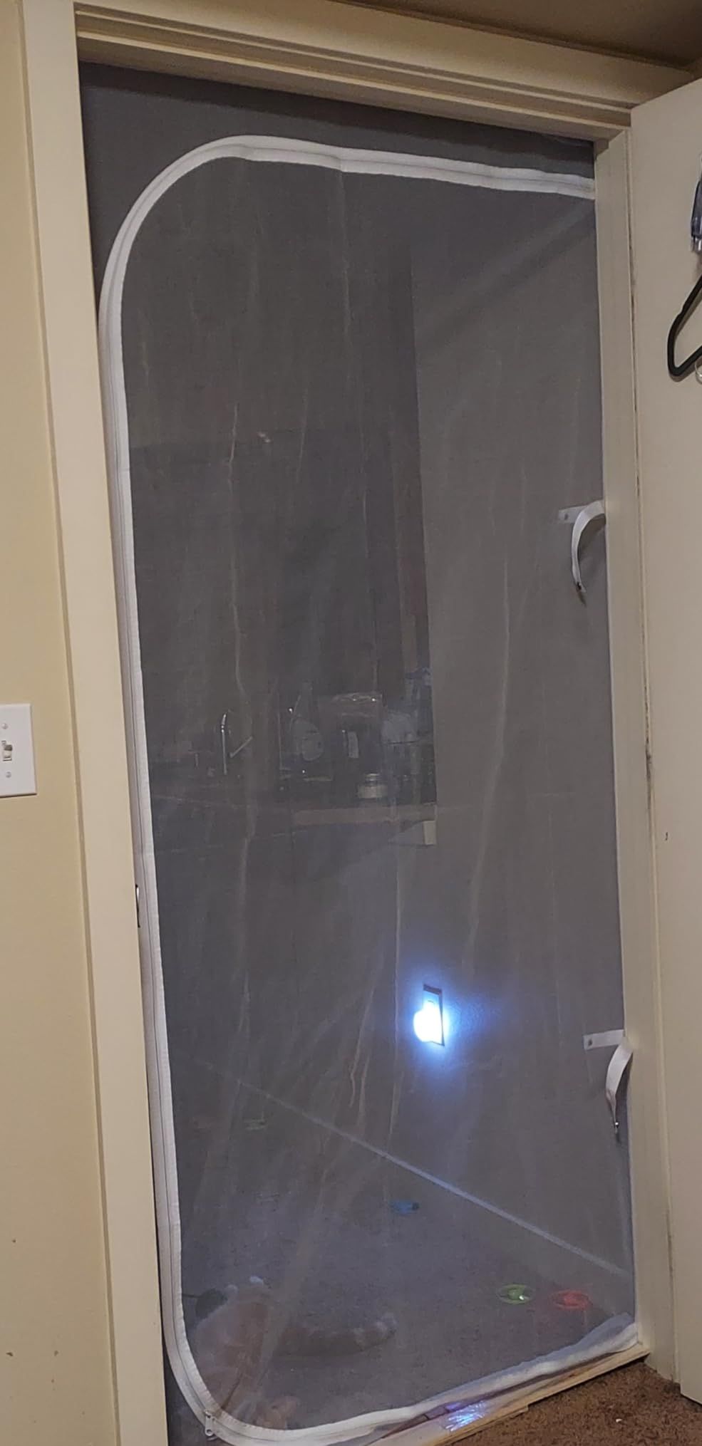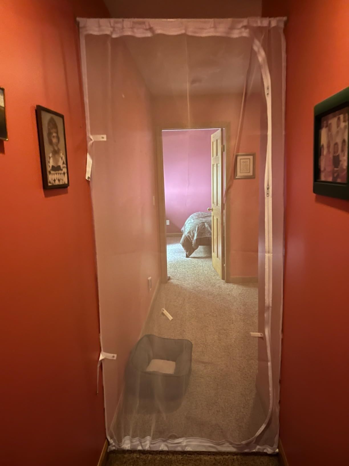 I got this for my doorway while recovering from surgery. It allows cool air into my room while giving me privacy. The snap closure straps are useful, but the velcro adhesive can damage wood frames. Overall, a good purchase for renters.