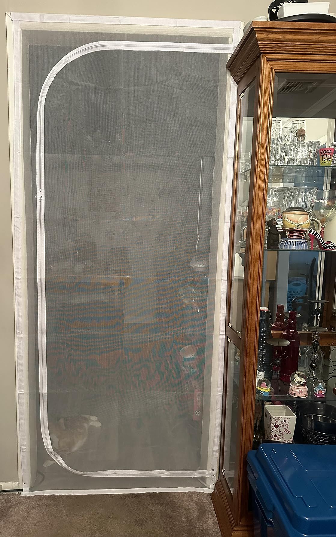 This screen has been a lifesaver, particularly in managing my cat's recent diabetes diagnosis. It's affordably priced and effectively prevents my cat from accessing areas that could exacerbate his condition. Traditional child gates and other barriers proved futile, but this screen has been perfect. It allows easy access for the family and the dog, while keeping the cat safe and included. The screen lets him see household activities, maintaining his sense of belonging. Despite attempts by the cat and dogs to challenge it, the Velcro and zipper have held up remarkably well. This screen has been instrumental in helping control my cat's diabetes by keeping him out of harm's way while still feeling part of the family dynamic. A heartfelt thanks for this product!