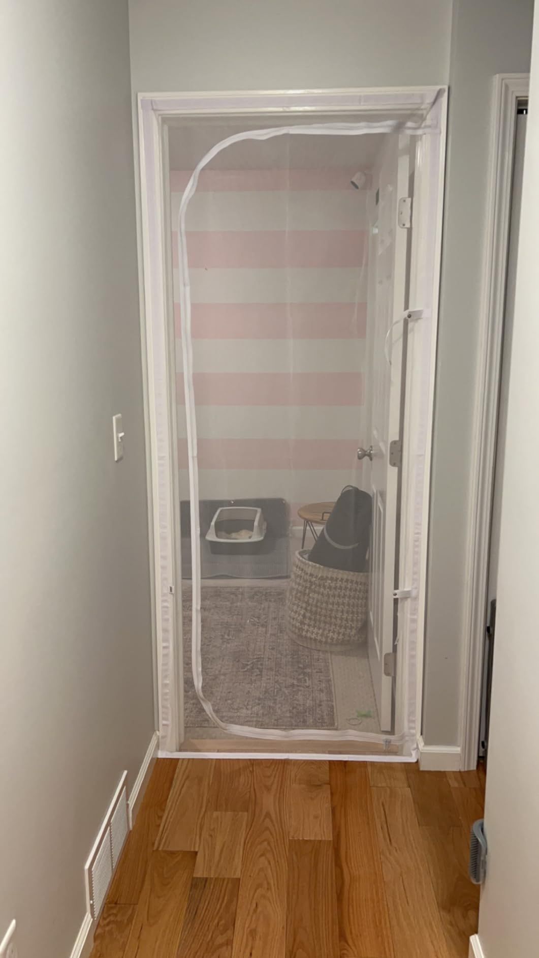 This screen has been helpful in the transition with our new kitten. It doesn’t fit perfectly from top to bottom in my door, requiring some setup adjustments, but it’s been effective otherwise.