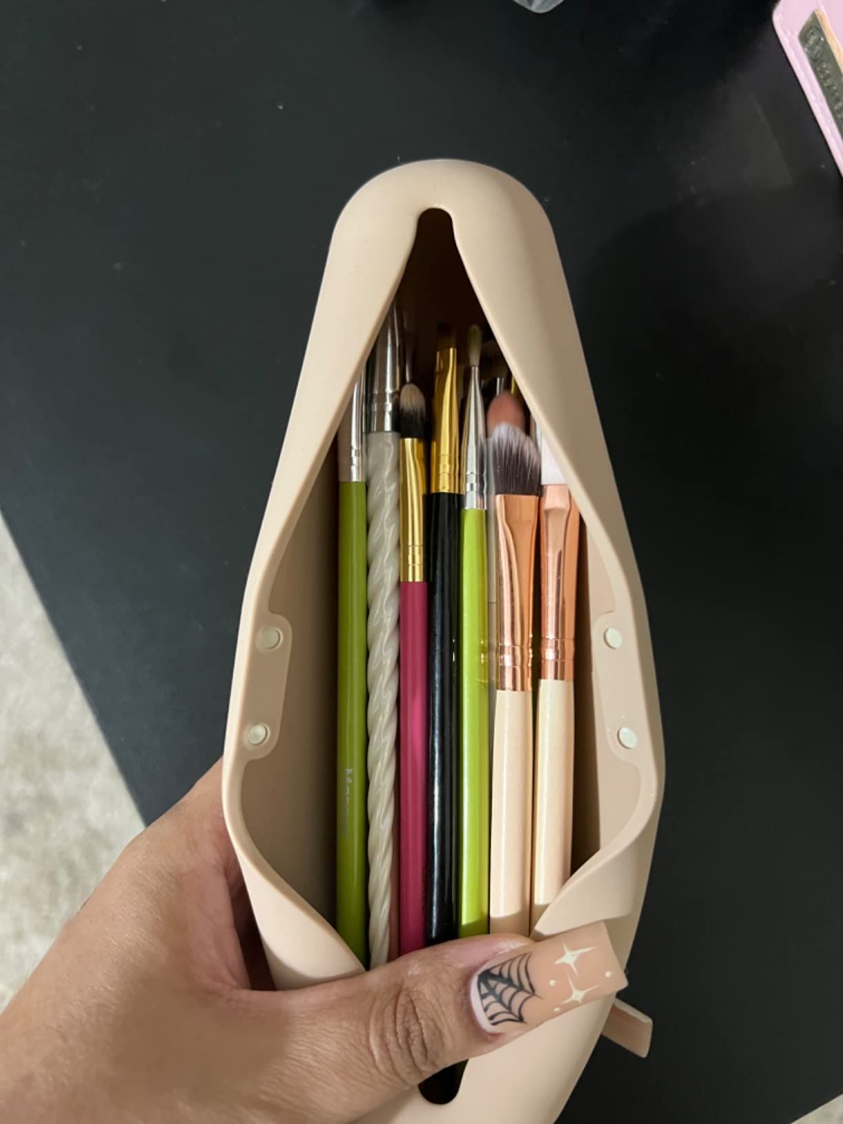 Crafted from premium soft silicone material, this makeup brush case provides a gentle touch, free from any odors and potential allergens. Its skin-friendly nature ensures that your delicate makeup brushes rest in a safe and non-reactive environment, safeguarding both your skin and tools.