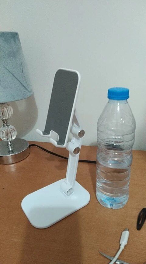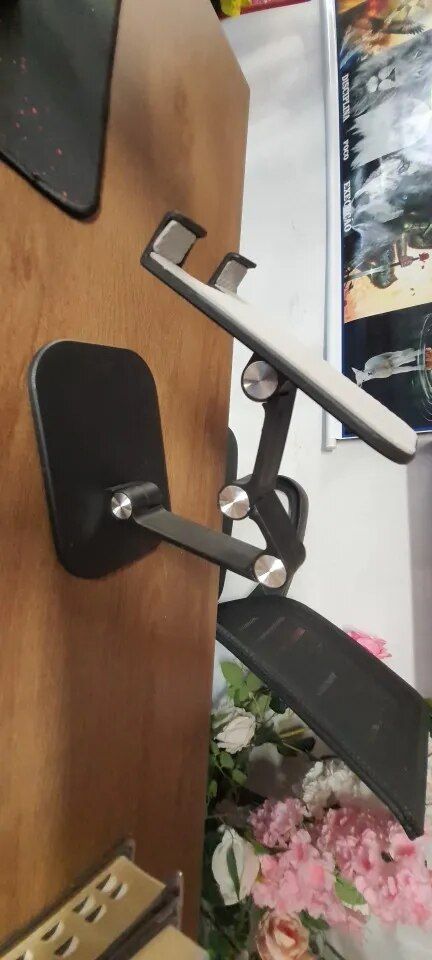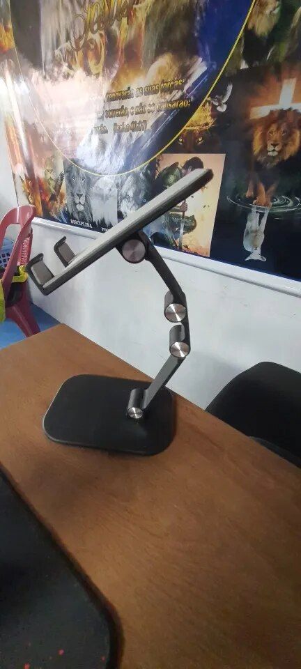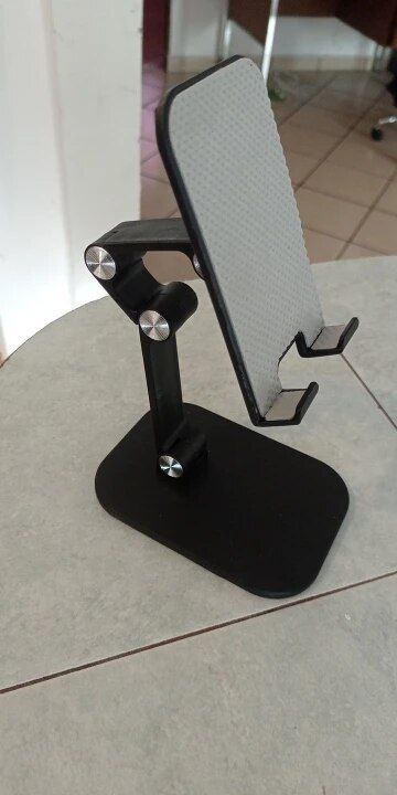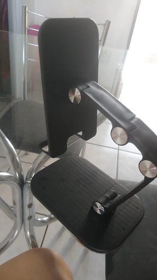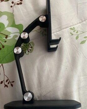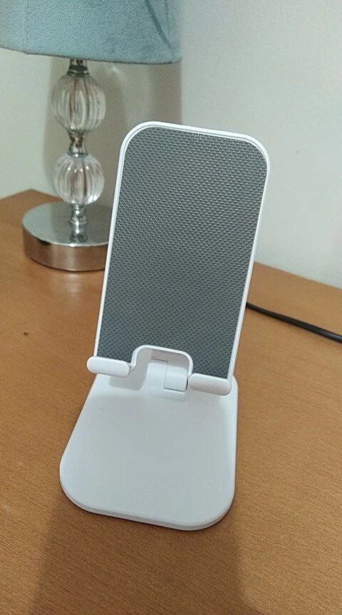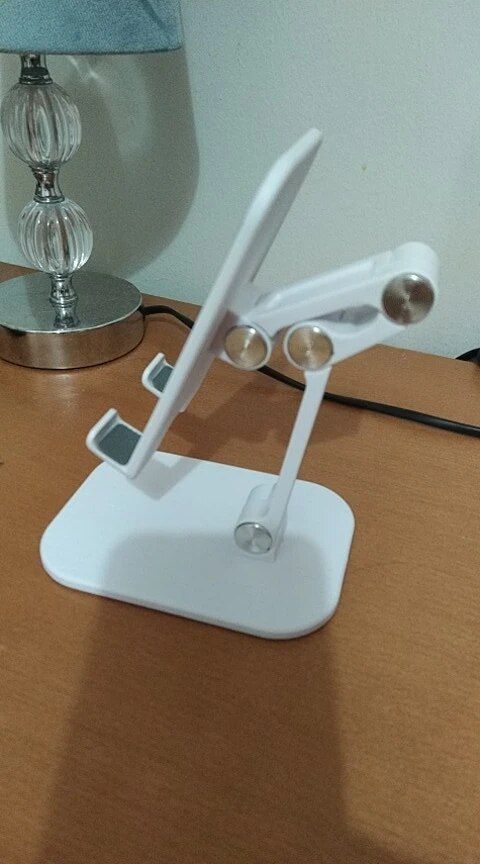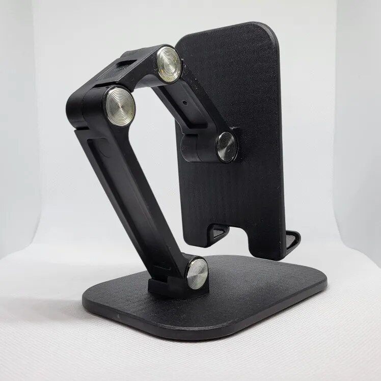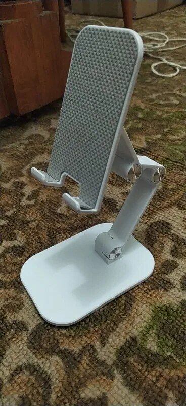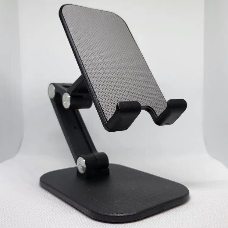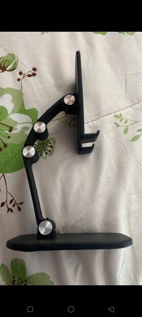 Nice desk mobile phone holder. Has multiple sections to move to the position you desire. I placed my tablet in it also, and it did hold it up with folded sections close. Has grip pads for desk and rest area. Shipping was fast, and the description was accurate to the item received. Thank you, seller. 😊