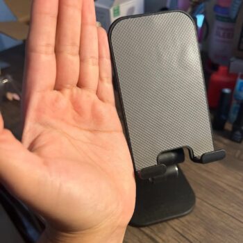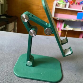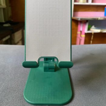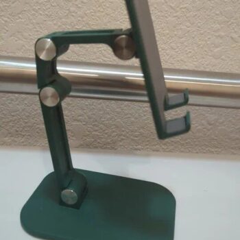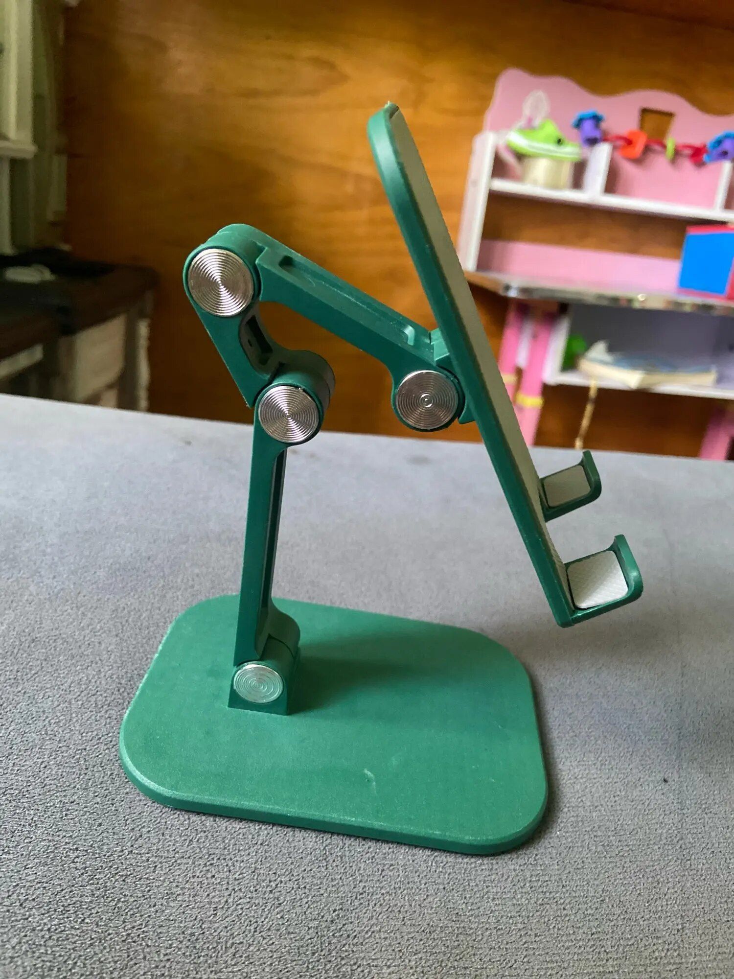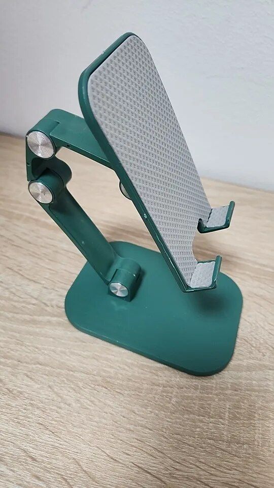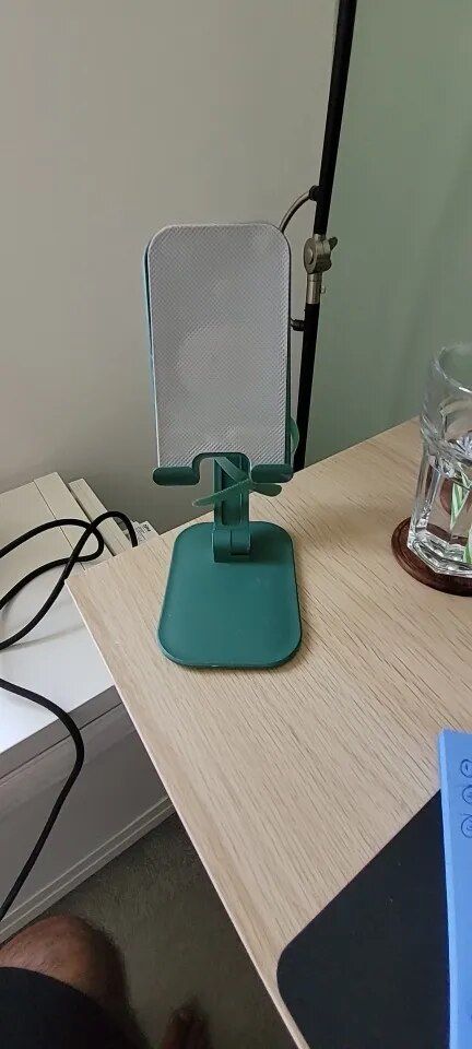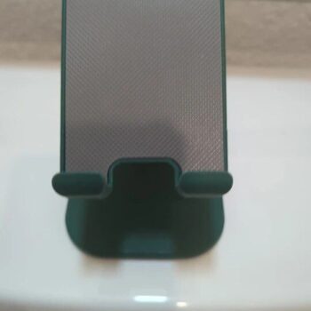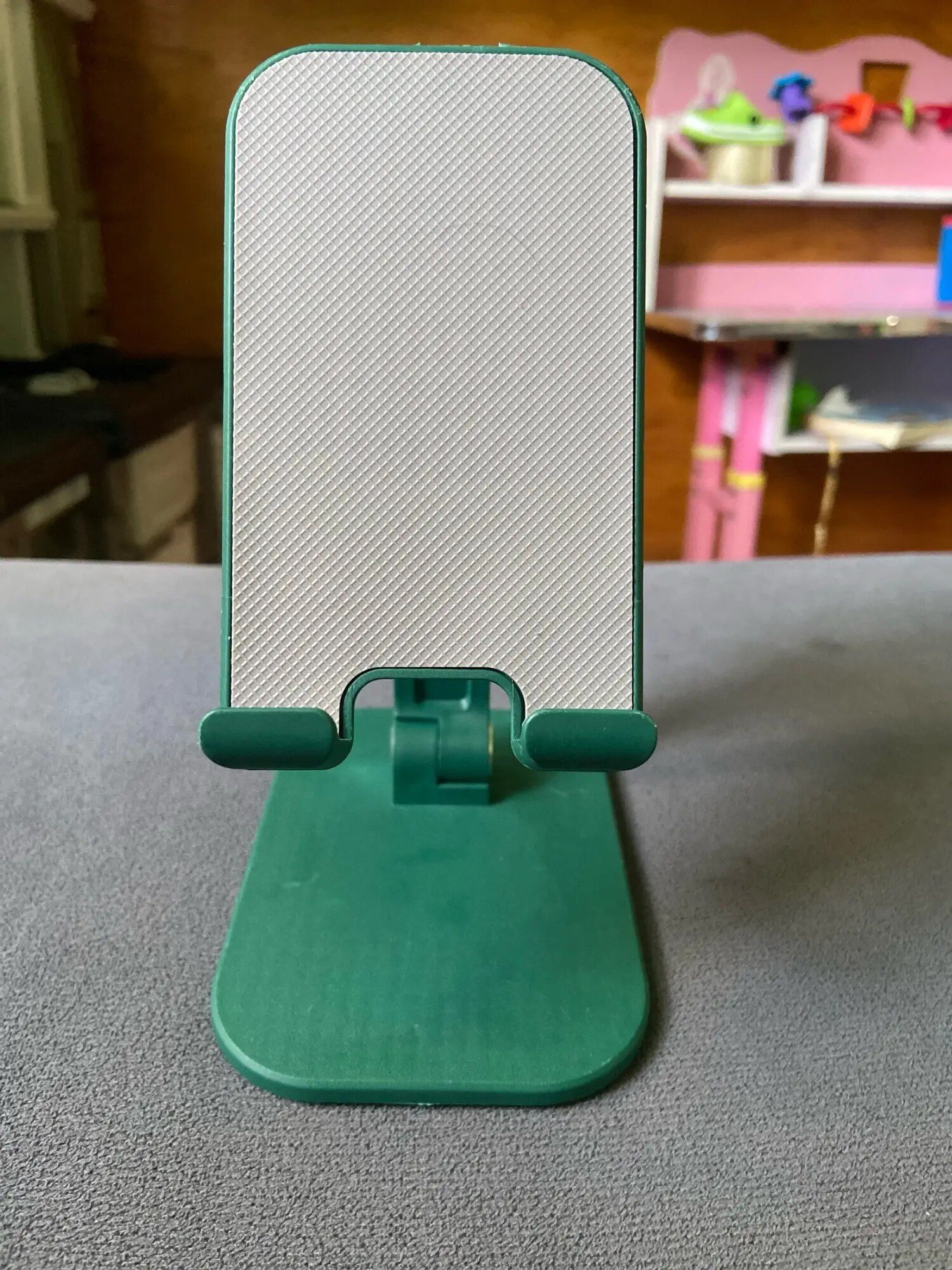 I love this phone stand. it's a really good size feels incredibly durable it's not lightweight or flimsy. it doesn't look exactly like in the picture in the picture it's like a shiny green color but here it's just like a matte green but it works really well and my phone is heavy it's a Google pixel 7 pro and it holds it without buckling.