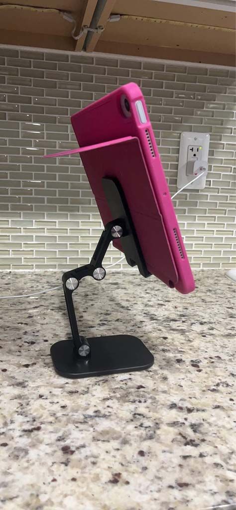 I'm a chef, and this stand has transformed my kitchen experience. It securely holds my tablet for recipes, and its adjustable angles allow me to view it comfortably without cluttering the counter space