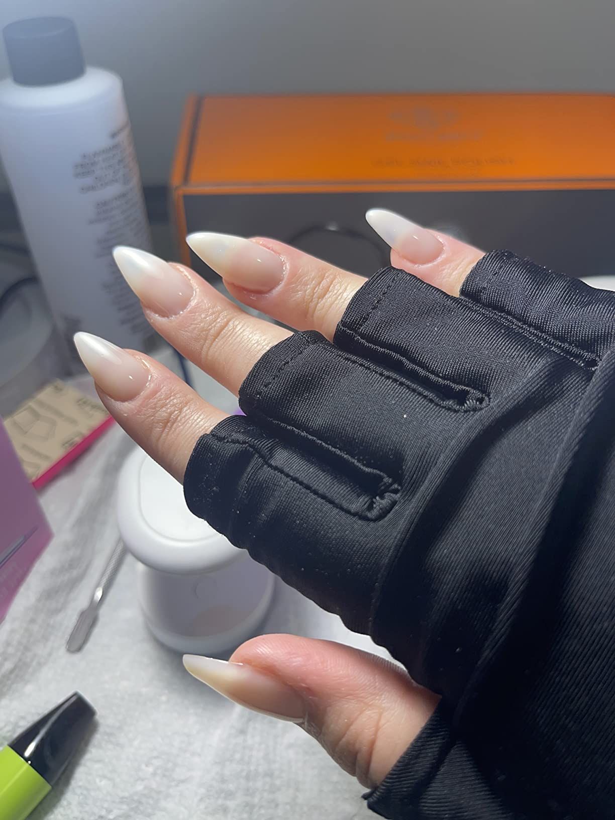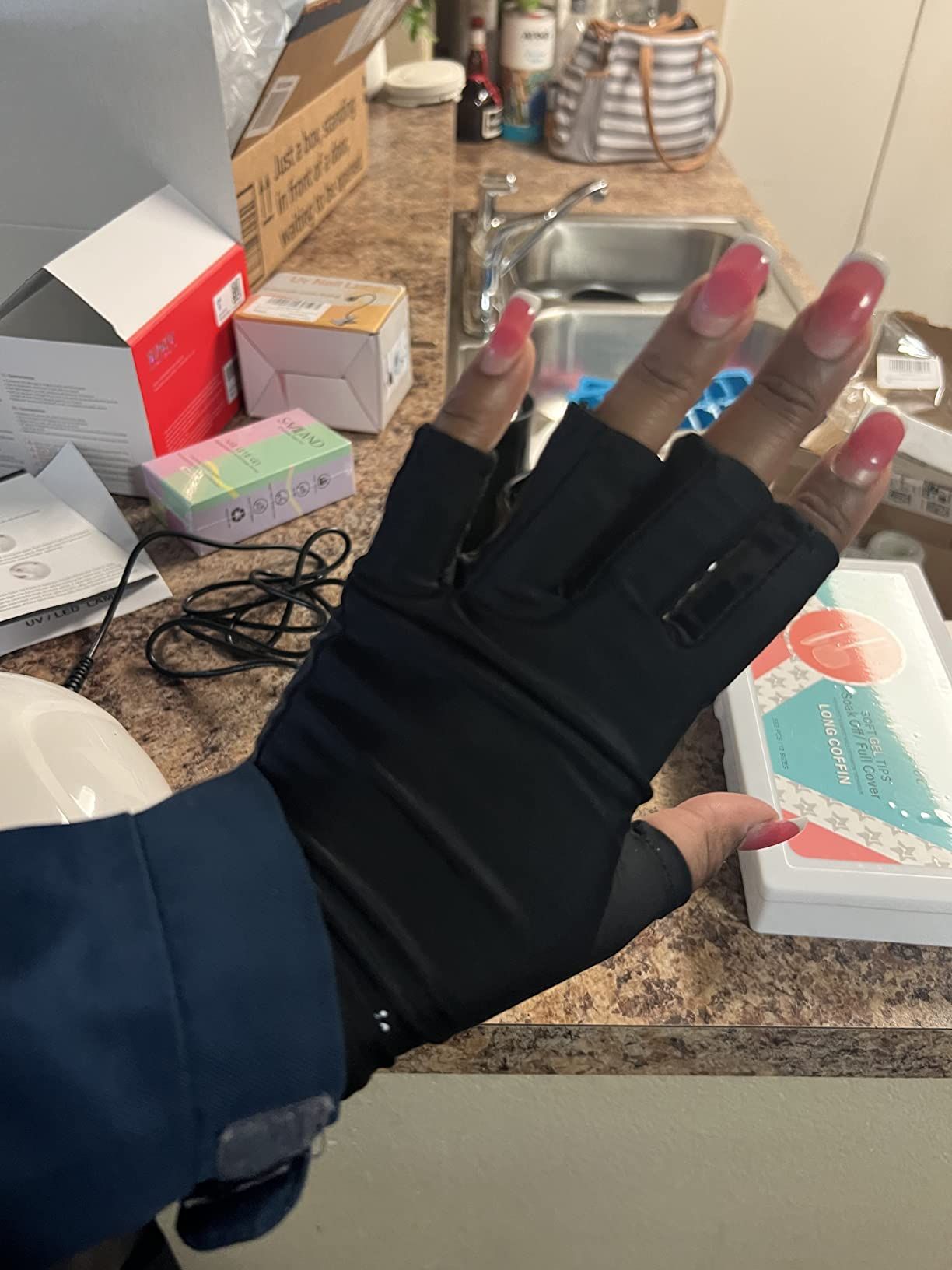 I'm really glad I got these gloves. Before, when I went to the salon, the UV light used to burn my hands. Now that I do my nails at home, these gloves have been a savior – no more burning sensation.