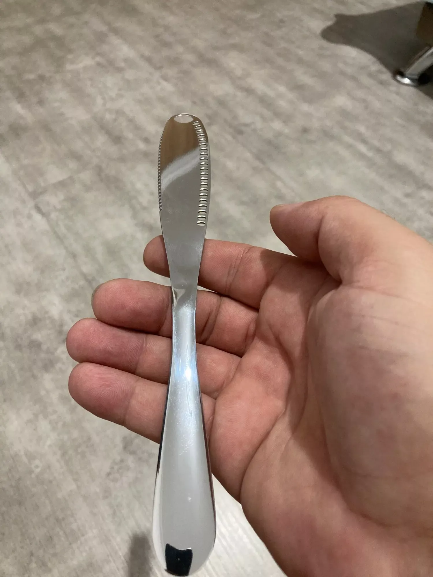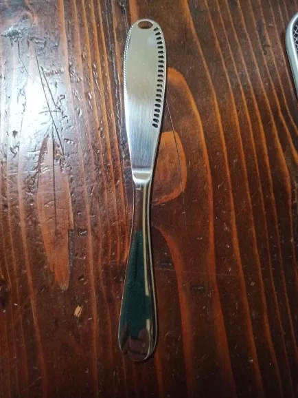 Love that it's stainless steel and not plastic. Makes spreading butter and cheese so much easier. Proud of this purchase.
