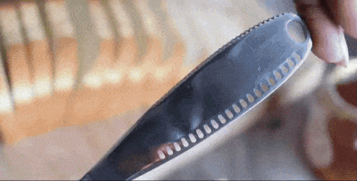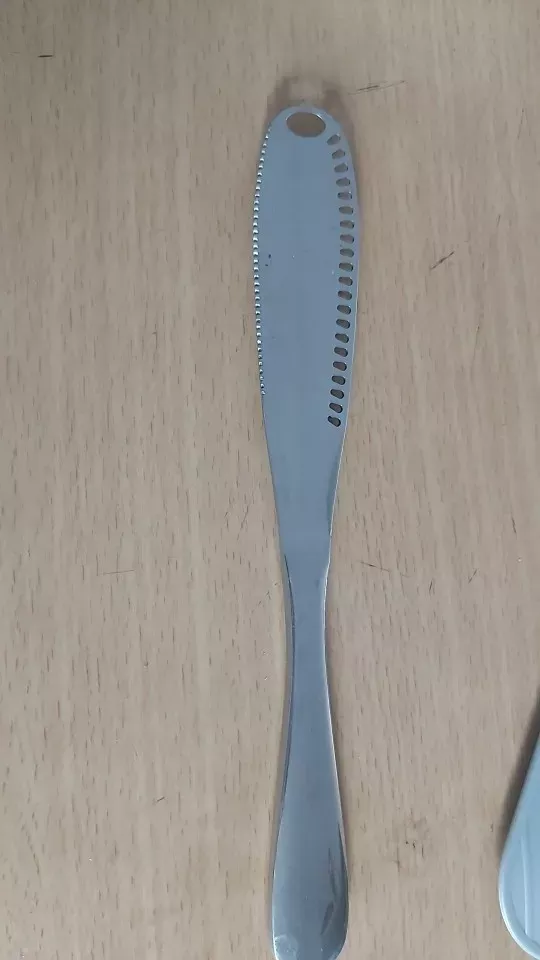 This knife is a godsend for spreading butter straight from the fridge. It scrapes off just the right amount for an easy spread.