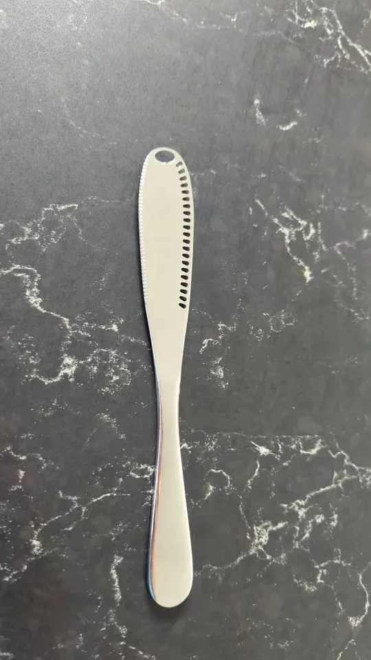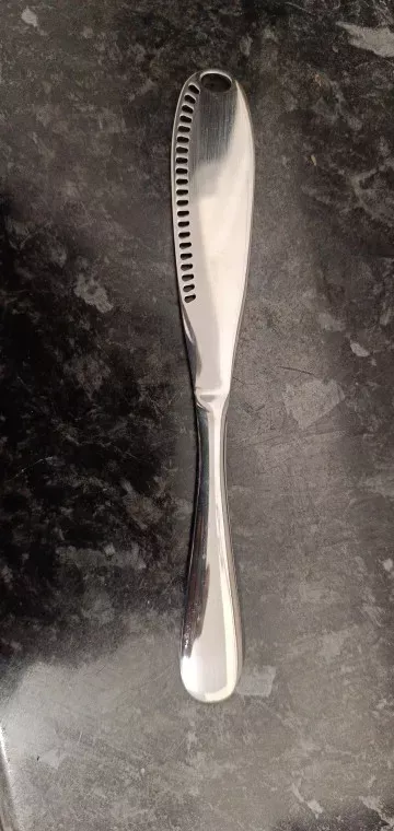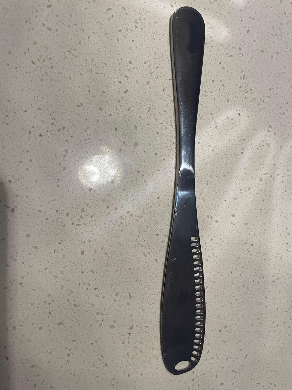 This butter knife has been a game-changer. Makes spreading butter a breeze. Good price, and I'm super happy with it. My husband doesn't see the hype, but my adult son gets it!