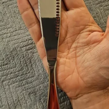 What sets our knife apart is its unique 3-in-1 functionality. It’s not just a knife; it’s a tool that simplifies your cooking process. Use it to smoothly spread butter or cream, slice through bread without crushing it, and effortlessly cut through cheese. Its sleek design makes it a stylish addition to your kitchen, while its multifunctionality makes it a practical tool for everyday use. Perfect for both casual family dinners and elaborate feasts, it’s the best tool to have for a hassle-free cooking experience.