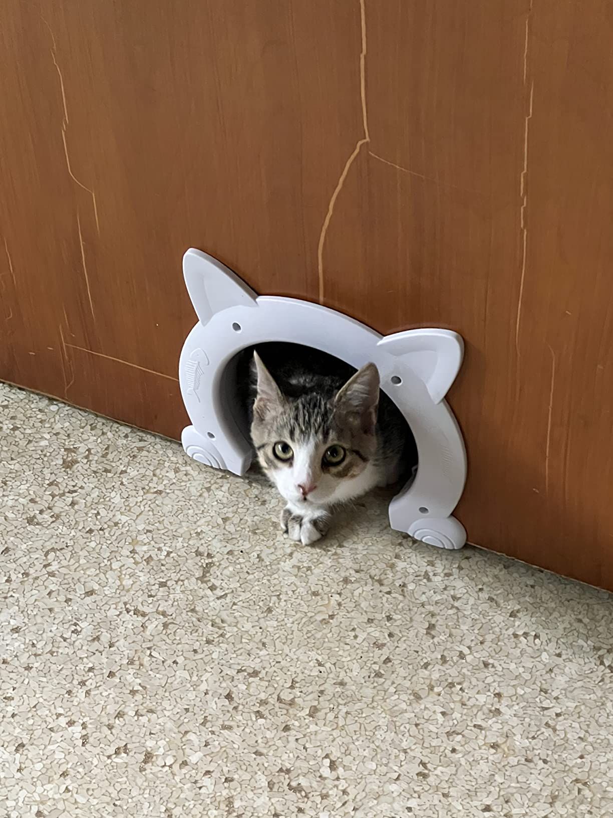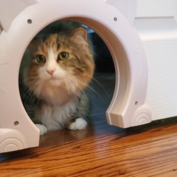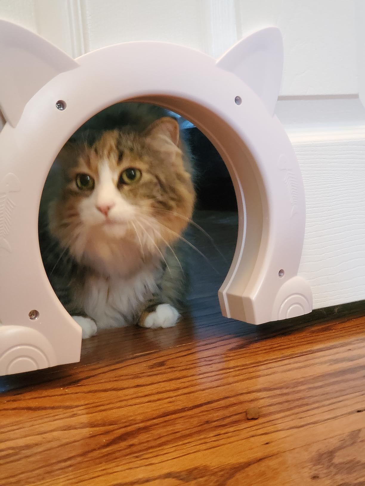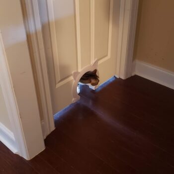 This pet door is the cutest thing I've seen in a long time. Both my cats use it all day, and I've conveniently installed it on my bedroom door for easy access.