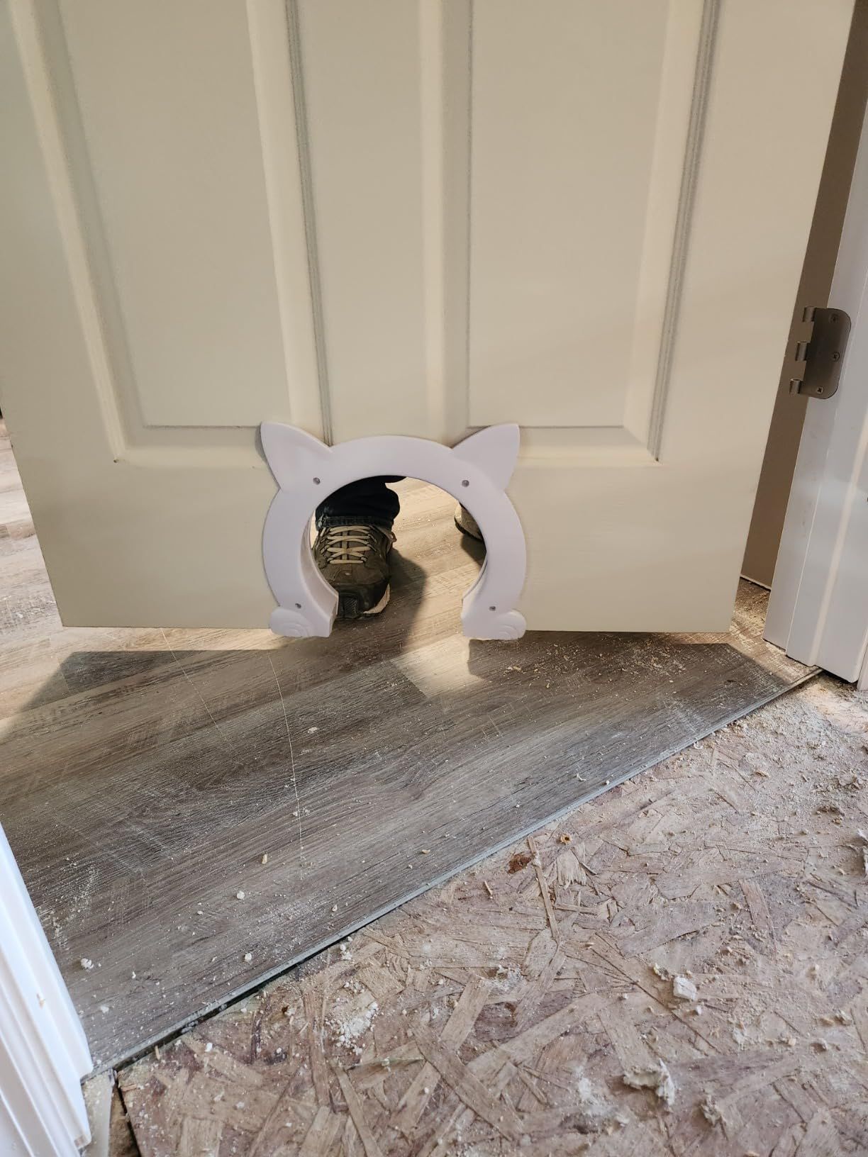 The door was perfect for converting a closet into a litter box room, efficiently utilizing limited space in the house.