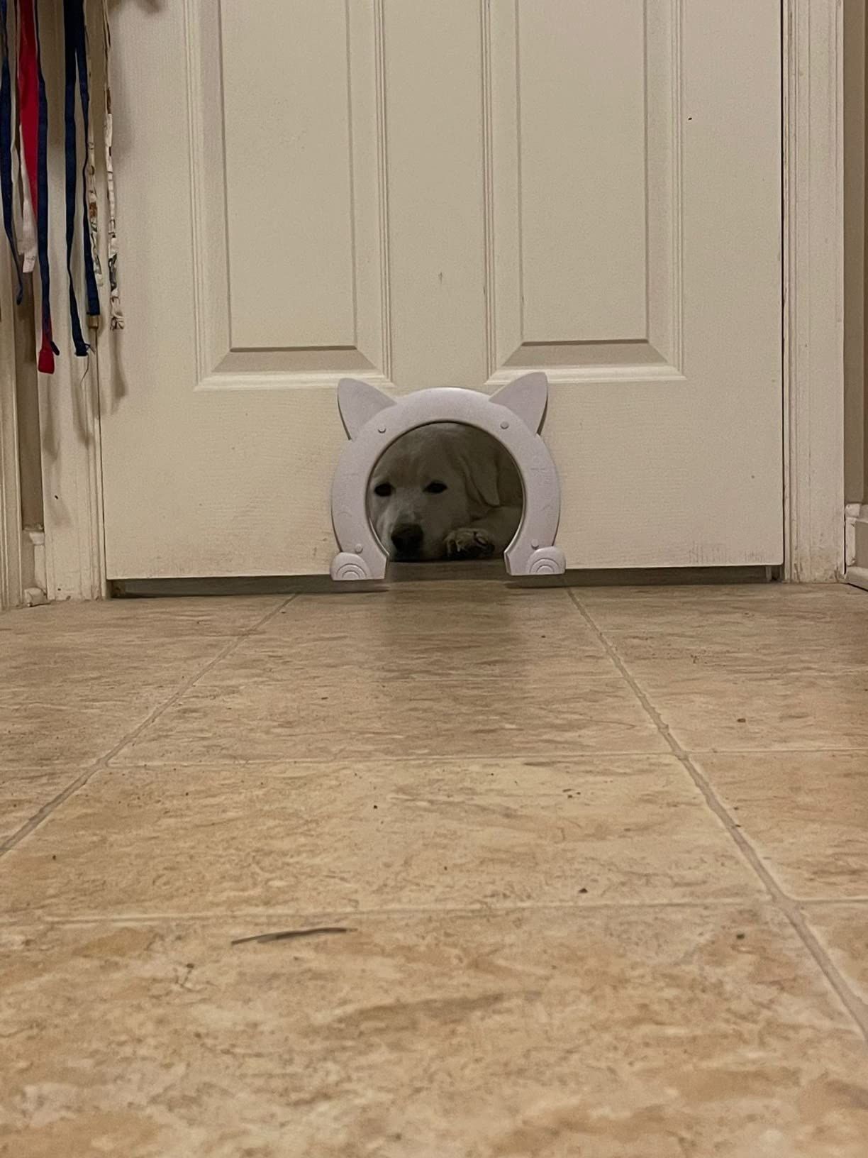 We love this pet door! I installed it on our bathroom door, which has been a game-changer. Our cat used to scratch at the door every time we went in, but now he can come and go as he pleases.