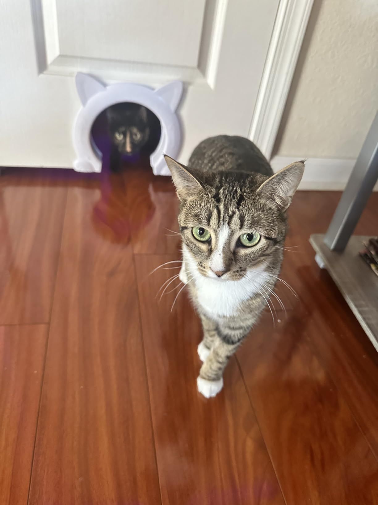 My cats are enjoying their newfound freedom to enter and exit the bedroom as they please. I'm relieved to be excluded from their nocturnal activities, ensuring peaceful sleep. The door's cute design was easy to install, and the cats adapted to it instantly.